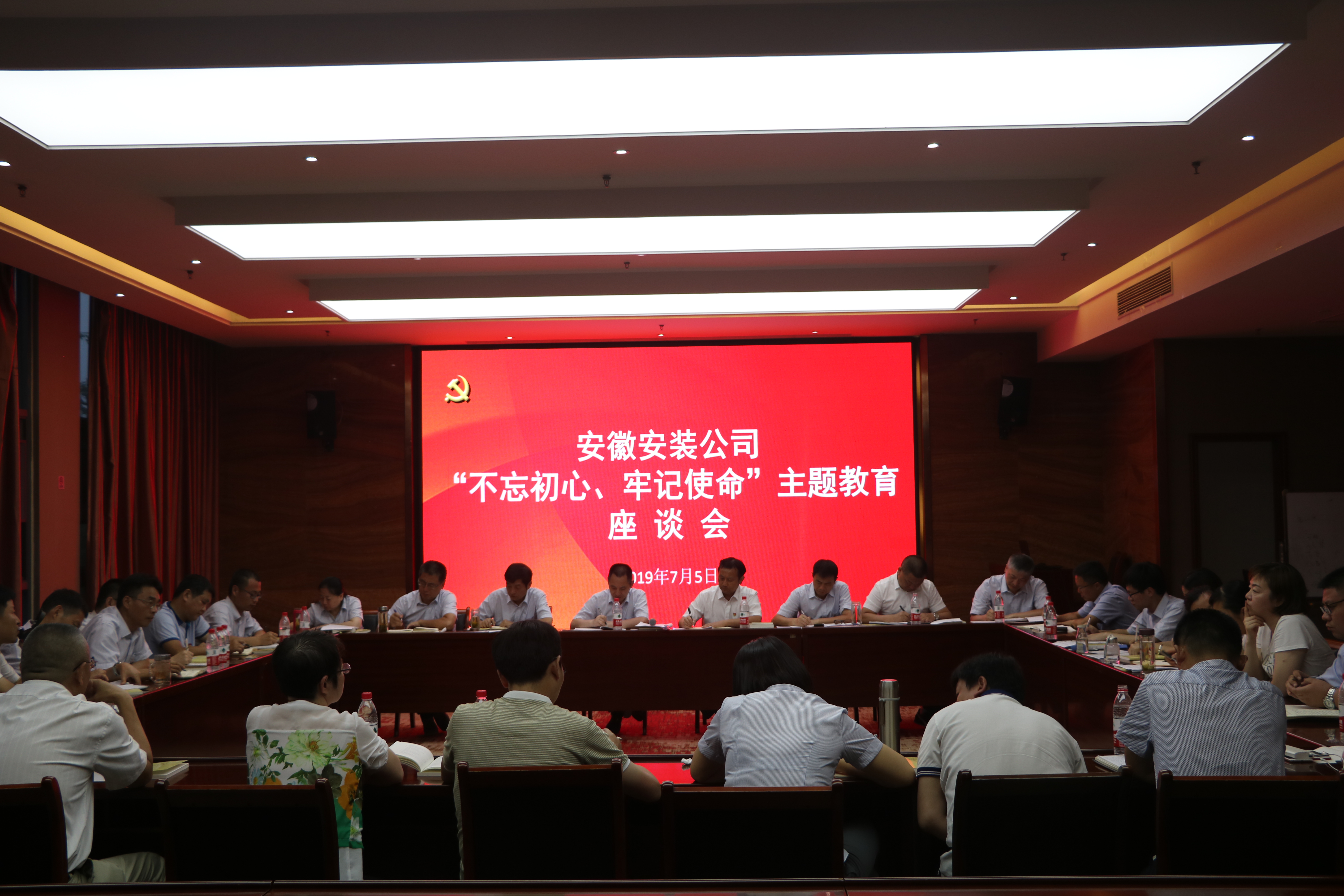7月5日,安徽安裝公司召開“不忘初心、牢記使命”主題教育座談會,公司領(lǐng)導(dǎo)班子成員出席會議,機關(guān)部門負責(zé)人、所屬單位黨政負責(zé)人參會。
