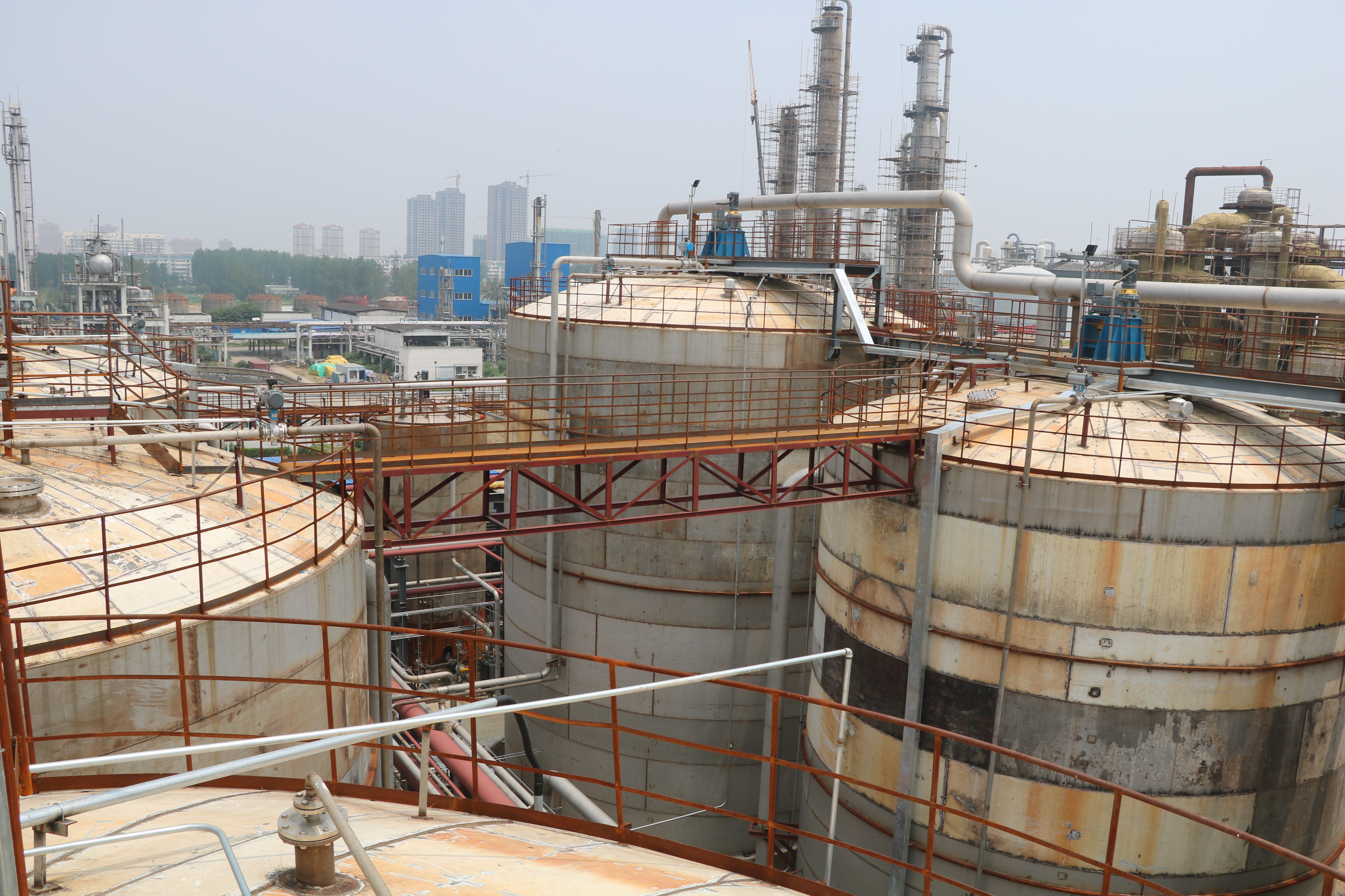 2018年10月,蚌埠分公司中標(biāo)宿州中糧無(wú)水乙醇搬遷技改項(xiàng)目。該項(xiàng)目為發(fā)酵工序區(qū)域以及酒精罐區(qū)、混配站裝置區(qū)域裝置利舊設(shè)備拆遷(保護(hù)性拆除)轉(zhuǎn)運(yùn)(含各類罐22臺(tái)、離心機(jī)組3套)非標(biāo)設(shè)備制作安裝,設(shè)備總重量約1055噸,工藝管道約4500米及電氣儀表專業(yè)施工。工程總造價(jià)1584萬(wàn)元。